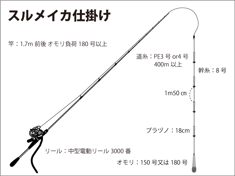 - オモリ:150号又は180号